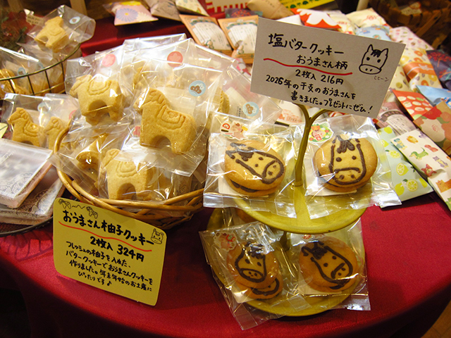 期待にお応えしたく、今しかない来年の干支のうまの形の「おうまさん柚子バタークッキー」や「村上煎茶のショートブレッド」など、普段は並んでいない限定クッキーもご用意しました。