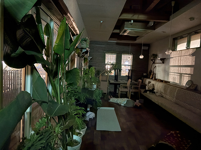 月に2回、植物に囲まれた気持ちのいいお部屋の中で「リセットヨガレッスン」をおこなっています。